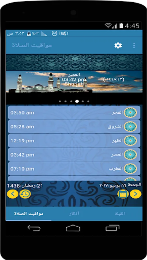 It is the application of knowledge to prayer dates and times of prayer in any country, and Qiblah direction from the addition program contains Azkar benedictions, as you can specify the voice of ears where you can choose the ears of Mecca or the city or choose one celebrity muezzins such as Abdul Basit, Naqshbandi, Mishari, Hamad Aldgrere and others, how to stop Aamkink ears at the heart of the device