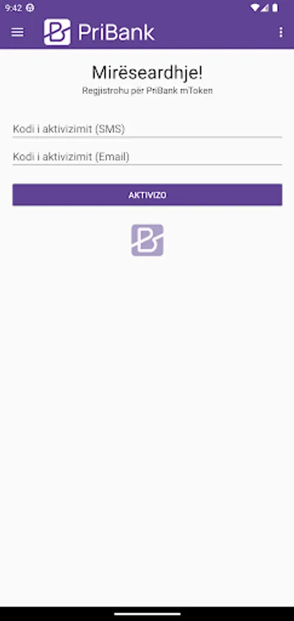 Pasi të instalohet aplikacioni, është e nevojshme ta aktivizoni me dy kode të cilat i pranoni pas aplikimit tuaj në njërën nga degët e bankës me e-mail apo me mesazh në telefon.