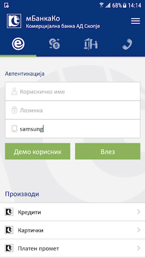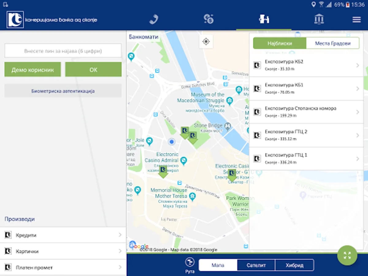 Open access – you can use the application even if you are not a user of the Internet Bank. Before you decide to register and activate it, you can use publicly available services for our products and services, geolocation services, etc. Use the demo user to try the access to the services for checking account balances and making transfers.