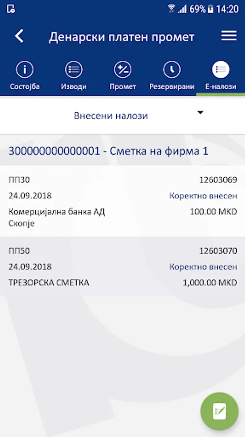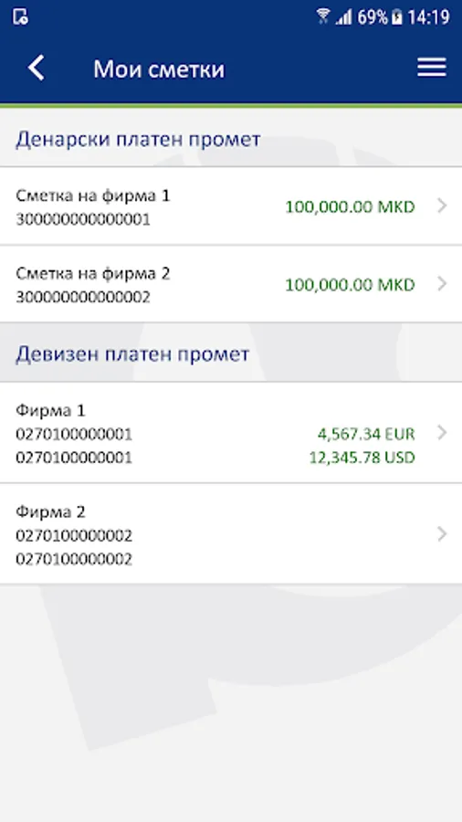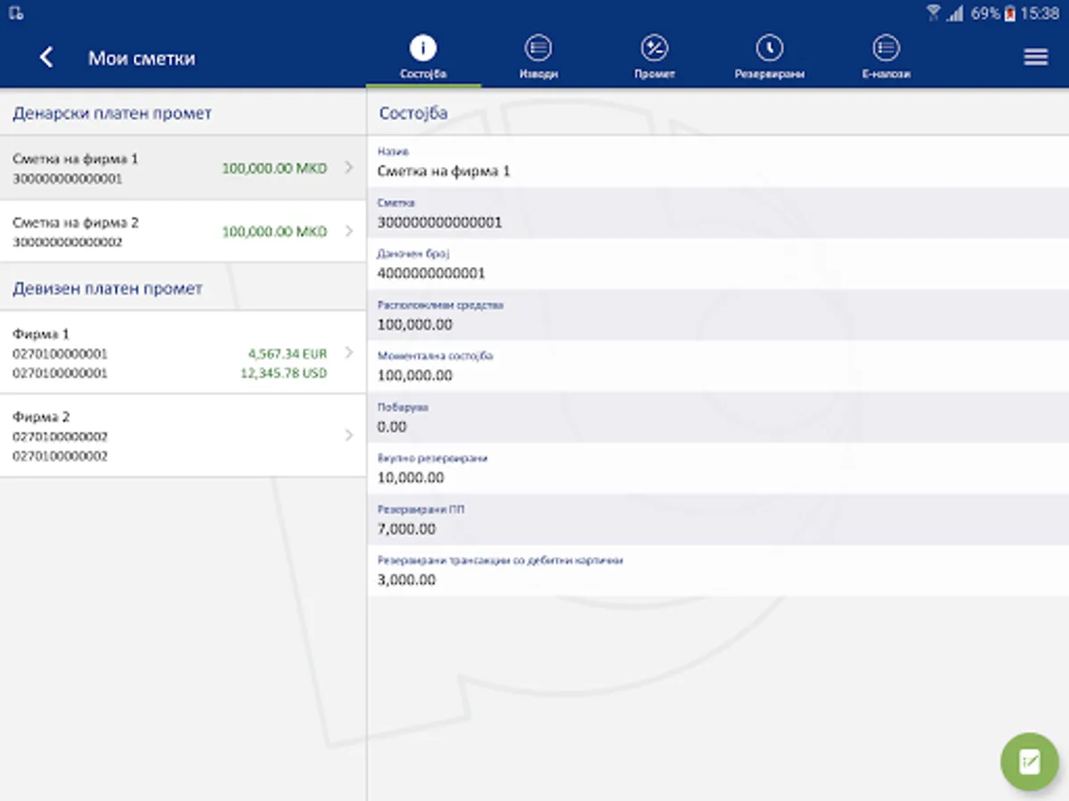 • insight into the status, changes and statement of accounts (denar and foreign currency account)