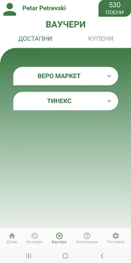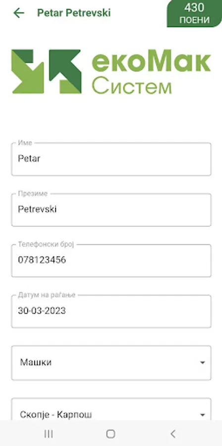Ekomak is an innovative system for selective waste collection by packaging and data analysis for PET plastics and cans. The application allows users to collect points and use points in markets as vouchers. It is part of a larger ecosystem where the user uses the application to authenticate with a vending machine and collect points for the waste bottle.