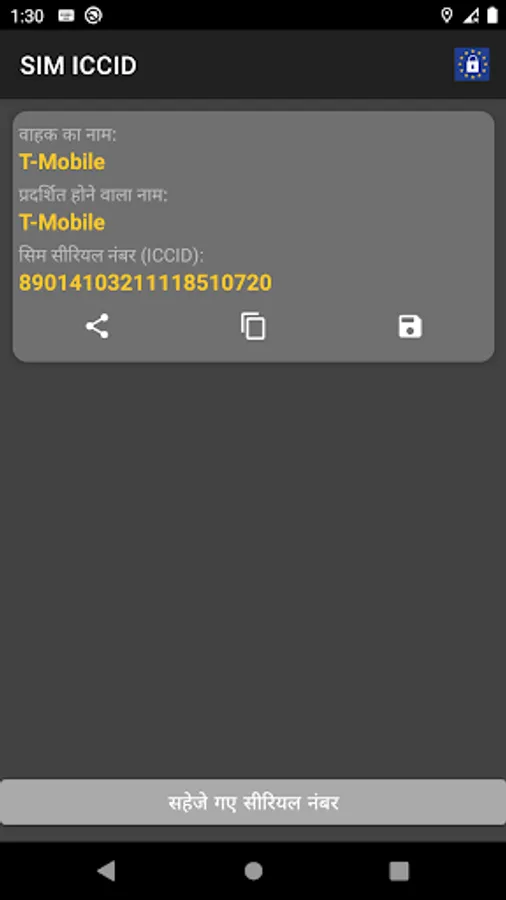 Also you can save the Carrier Name and SIM Serial Number (ICCID) with description in case you switched SIM Card in your device.