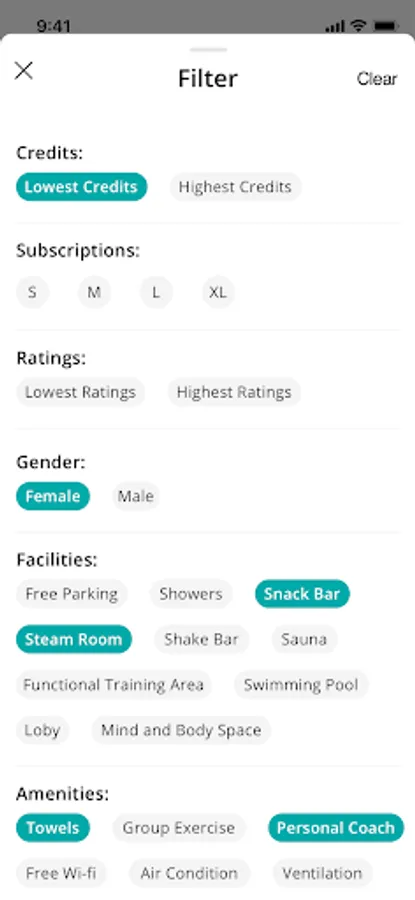 Each visit, workout or video program has its own value expressed in credits (our currency).