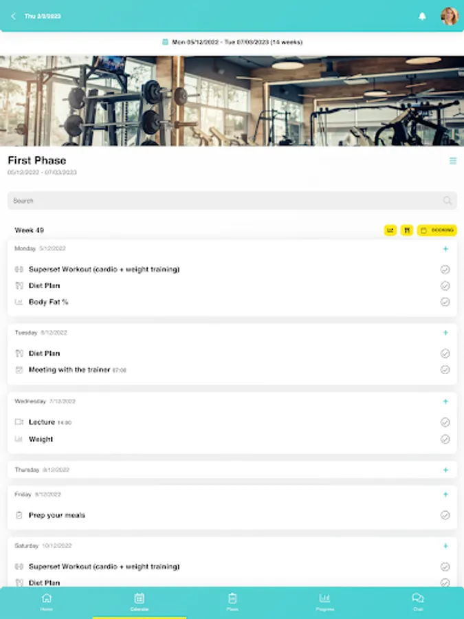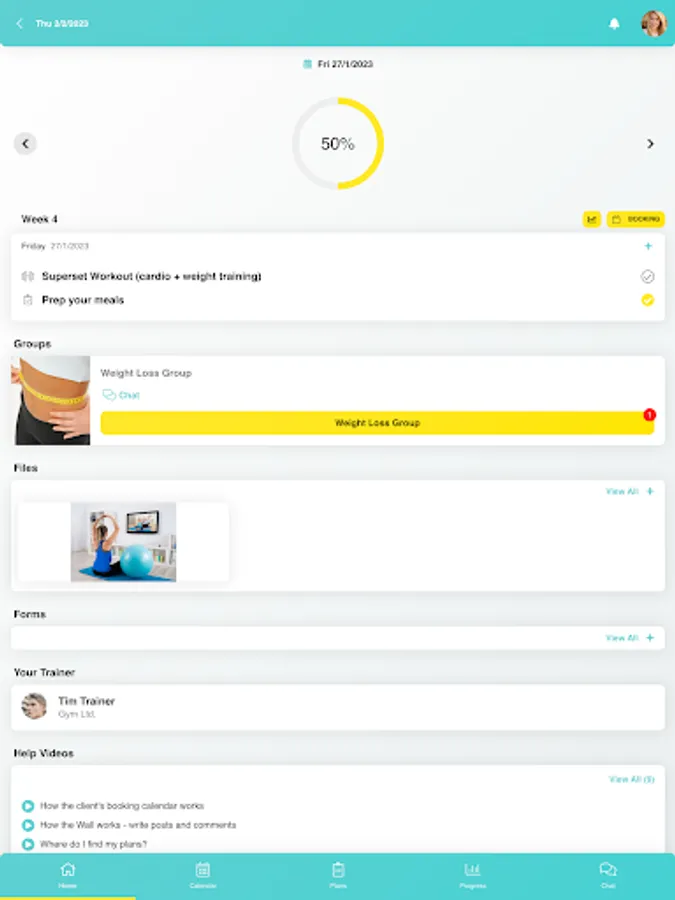 With the calendar, the client knows every day what tasks and programs are included in the current plan. The calendar is not just a calendar for workouts, but the coach can schedule anything for the client to do or see on a particular day, such as: Share videos and photos, give instructions, share articles, assign tasks, ask for feedback, send automated emails, chat messages, and push notifications. Clients can also add their own workouts to the calendar, keep a food diary, or add other events.