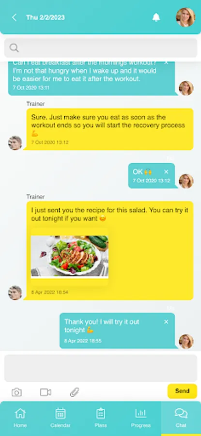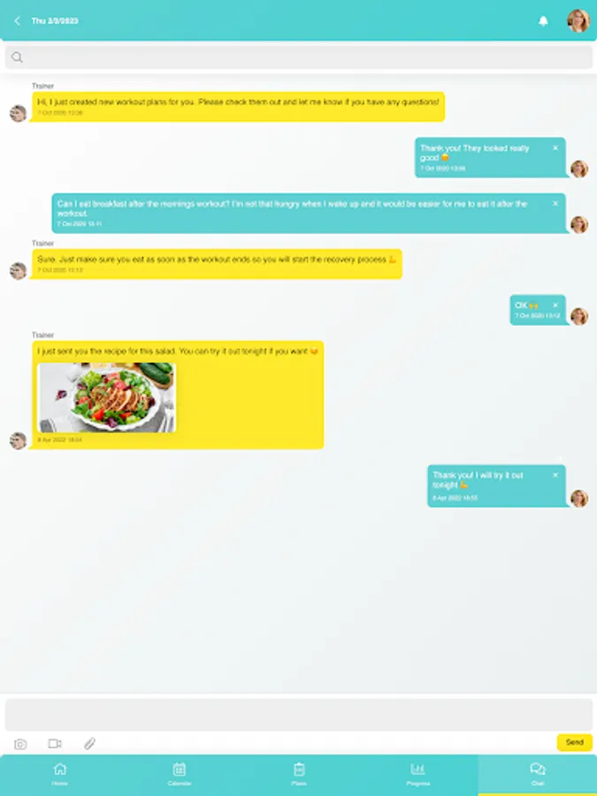 With a built-in chat, the coach can keep in touch with the clients conveniently and effortlessly. You can attach all types of files to your messages, such as pictures, videos, and PDFs. When a client belongs to a group, he or she can chat with other group members and motivate each other. If necessary, the chat can also be turned off.