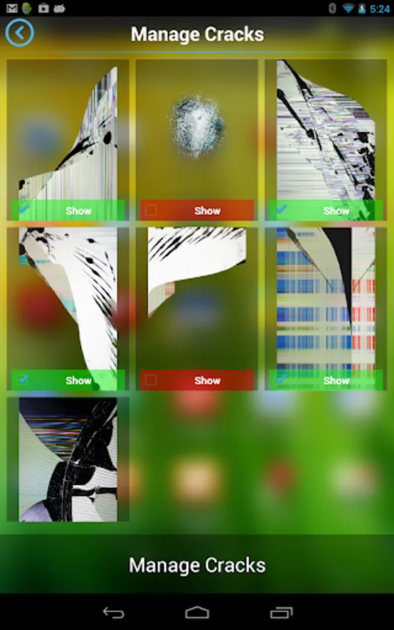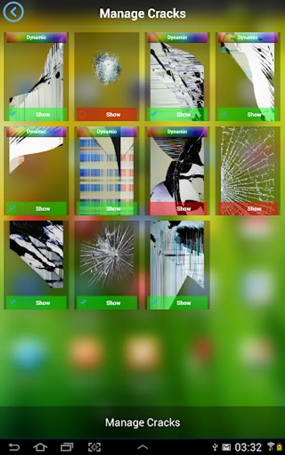 - Auto Crack Timer: Simulated broken screen will be shown after 5,10,15... seconds.