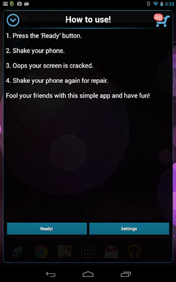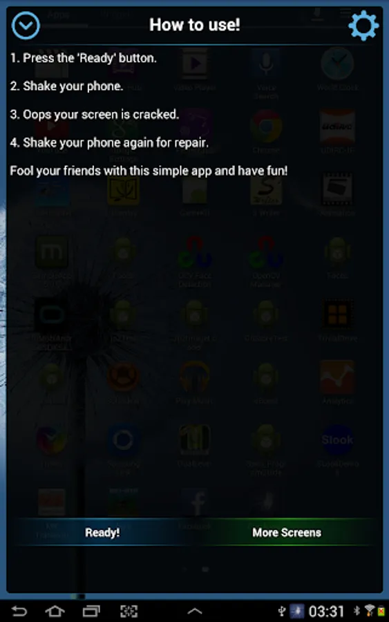 - Crack on SHAKE: Just one shake and simulated broken screen will show!