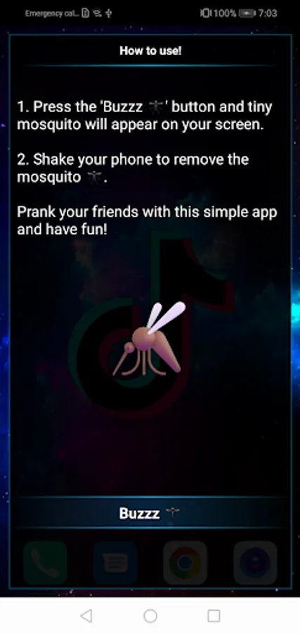 Note: This is only a simulation app and it’s completely harmless. There’s no real mosquito on your phone or screen.
