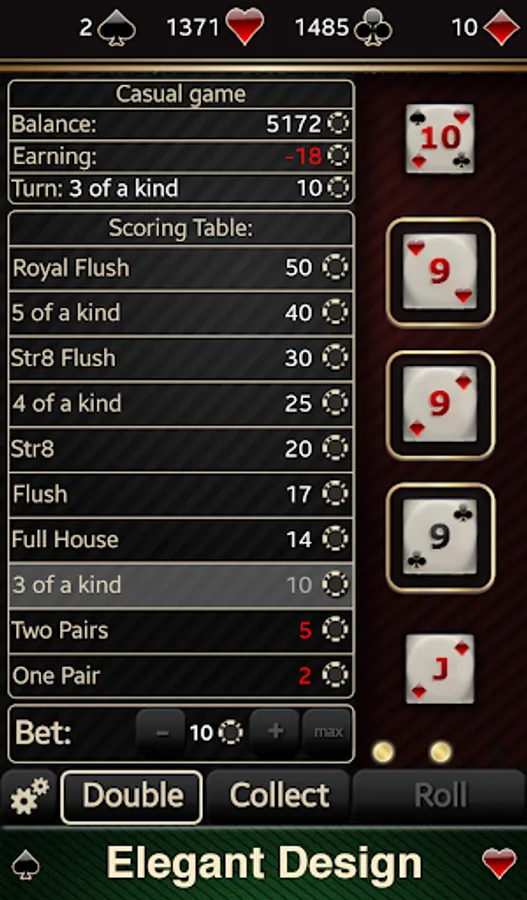 Poker Dice Challenge is highly addictive dice game based on Yahtzee™ and Video Poker. With its elegant design it will allow you to enjoy yourself for hours.