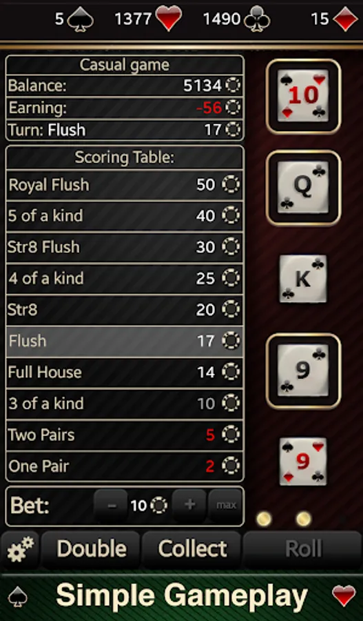 ★ Casual Game: Video Poker like game play.