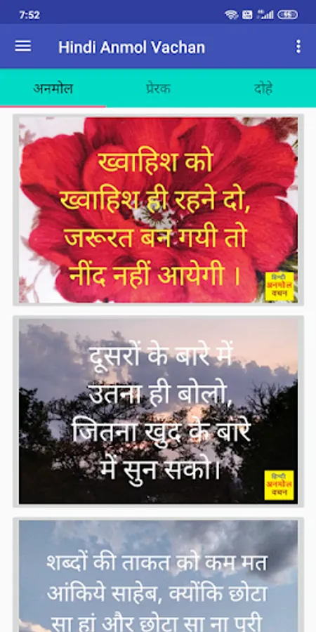 Hindi Anmol Vachan is collection of hindi suvichar and hindi quotes and hindi dohe.