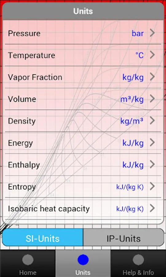 All units can be selected independently but the user might also switch between SI and IP unit system for all properties with just one tap. See the screenshots below this text for details.