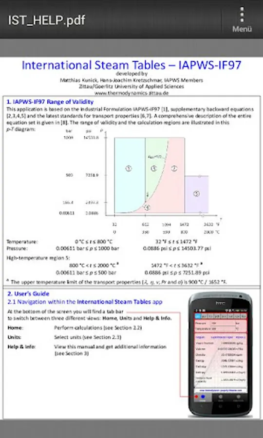A detailed User's Guide explains the features and capabilities of this App. View the User's guide online on www.thermodynamics-zittau.de.