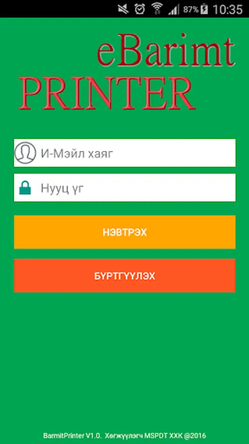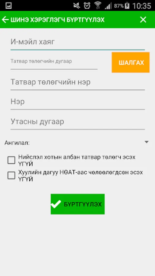 Та өөрийн хувийн и-мэйл хаягаараа бүртгүүлэхийг анхаараарай. Таны бүртгүүлсэн и-мэйл хаяг руу програмд нэвтрэх нууц үгийг үүсгэж илгээх болно.