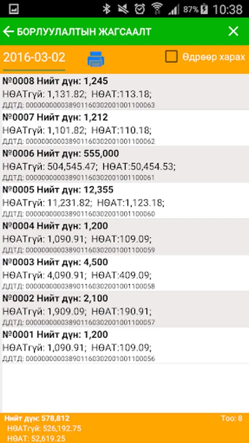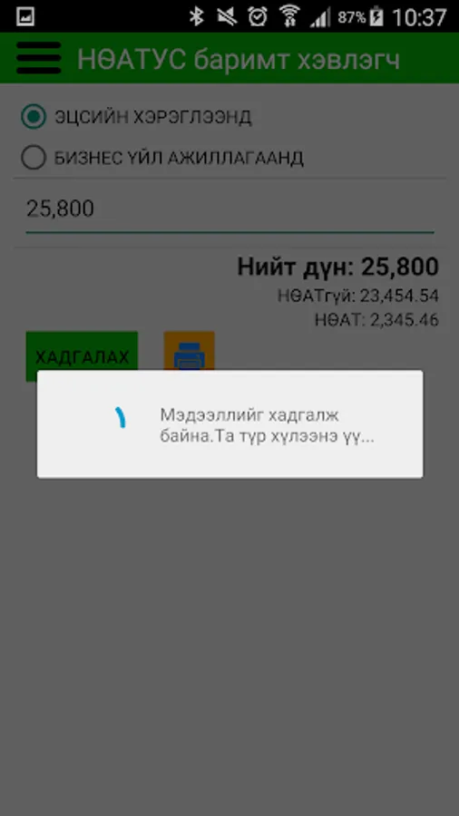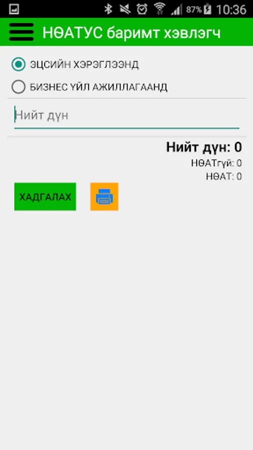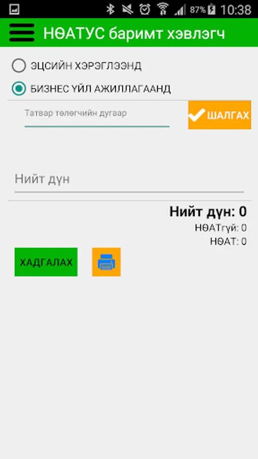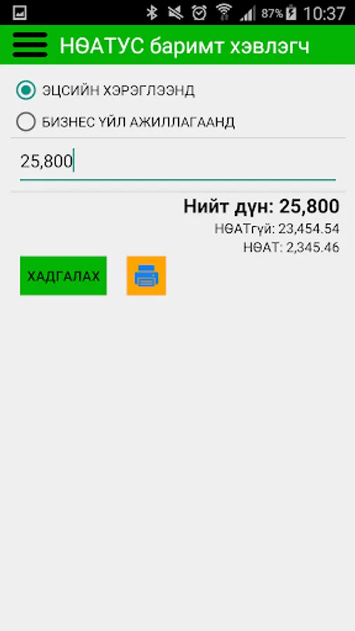 Бизнес эрхлэгч Та гар утаснаасаа e barimt PRINTER програмыг ашиглан худалдан авагчид татварын албан ёсны төлбөрийн баримт гаргаж өгч болно.