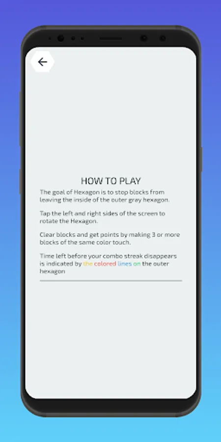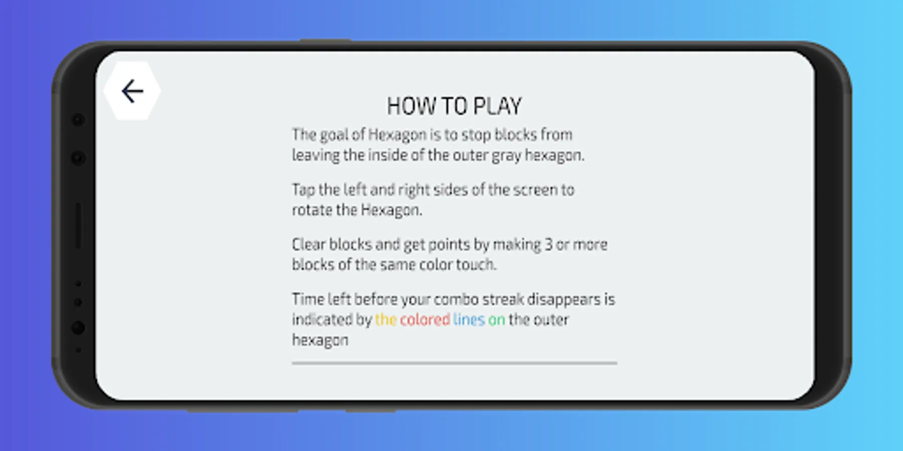 - Tap the right and left sides of the screen to rotate the Hexagon.