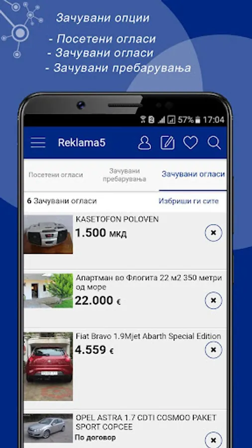 In Reklama5 private individuals and companies can buy and sell new and used products and to offer services also serve for the presentation of your business. If you want to sell your car, if you interested in engines, looking for job, or want to post an event, offer categories for almost all wishes.