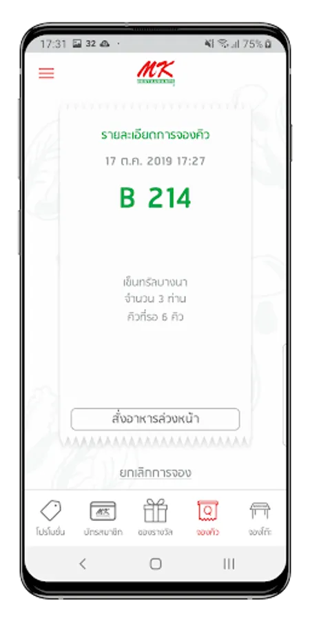 ระบบจองคิว (Queue Reservation) : คุณสามารถจองคิวสาขาที่คุณต้องการ โดยไม่ต้องรอคิวหน้าร้านนานๆอีกต่อไป