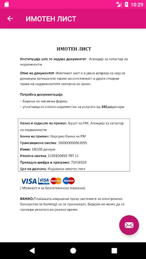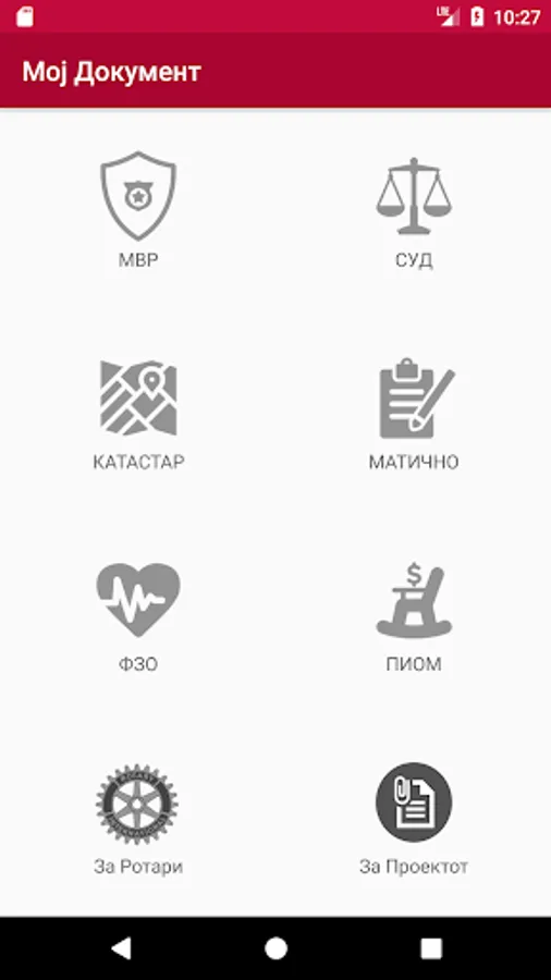 „МОЈ ДОКУМЕНТ“ опфаќа шест институции, со кои граѓаните остваруваат најинтензивен контакт во нивниот секојдневен живот, и тоа: Основен суд, Агенција за катастар на недвижности, Министерство за внатрешни работи, Фонд за пензиско и инвалидско осигурување, Фонд за здравствено осигурување и Управата за водење на матични книги. Апликацијата дава можност секој корисник потребните информации и обрасци за издавање на бараниот документ да си ги испрати на својата електронска пошта, како и истите да ги испечати.
