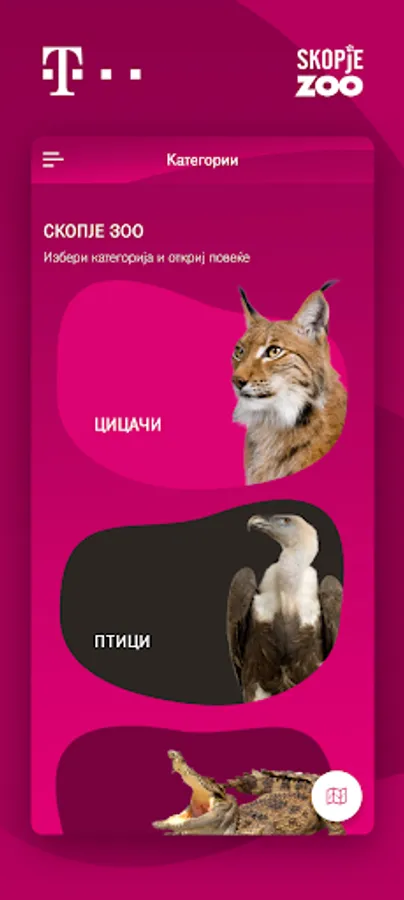 It allows the users to get acquainted with the animals at the Skopje Zoo and learn more about them, at home, while preparing to visit the Zoo or at the moment when they found themselves opposite the animal that aroused their special interest. By loading the QR code, placed on the information boards in front of each habitat, the users can search for text and audio content and be educated about animals. Knowledge always gives additional pleasure. In addition to information and knowledge, the application also offers a digital map for easier orientation and movement through the Zoo, as well as the option to buy tickets, individual or group, without waiting in long lines in front of the ticket office.