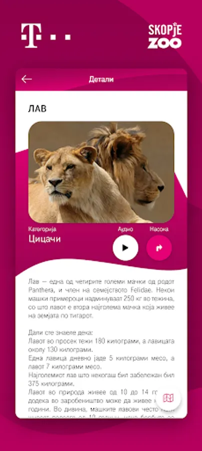 The mobile application “Skopje ZOO” is developed by Makedonski Telekom as a special project within the partnership between the company and the ZOO of the City of Skopje.