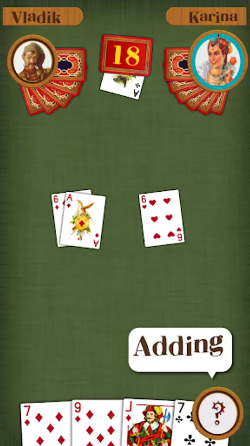 This game has no winner - only a loser. At the start, each player is dealt six cards, which are played in a series of bouts of attack and defense. When a player's hand is reduced to fewer than six cards it is replenished from the talon of undealt cards. After the talon is exhausted, there is no more replenishment and the aim is to get rid of all the cards from your hand. The last player left holding cards is the loser. This player is the fool (durak).