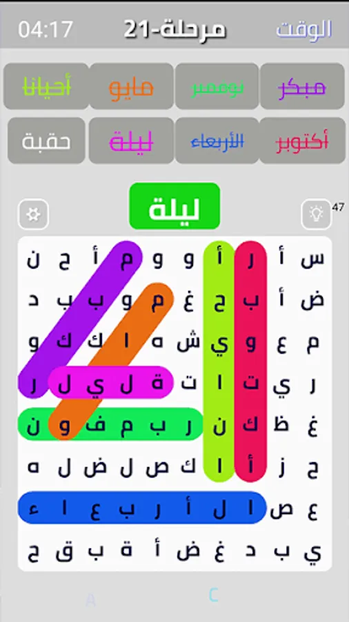 في لعبة البحث عن الكلمات العربية المجانية، ستواجه مجموعة متنوعة من الألغاز بمستويات صعوبة مختلفة. ستجد كلمات مخفية في جميع الاتجاهات، بما في ذلك لأعلى ولأسفل وفي الاتجاهات الأفقية والرأسية. يمكنك أيضًا العثور على كلمات مخفية تمتد عبر عدة أحرف.