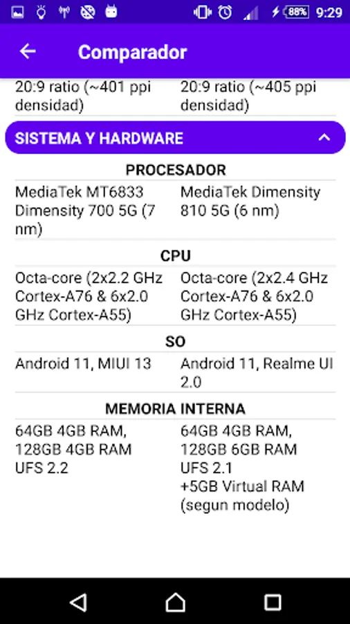 You will be able to find many smartphone equipment to review their complete specifications, in addition to being able to compare 2 smartphones simultaneously.