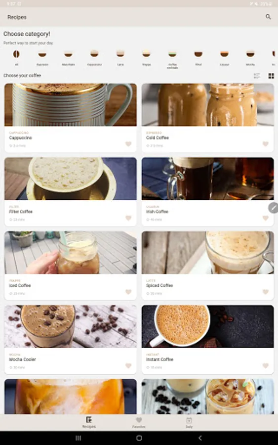 No need to worry, this app will get you covered. Cappuccino, Espresso, Dalgona, hot or cold, sweet or bitter, or even Spice Pumpkin Latte, take your pick. You can now prepare them all by yourself and have your favorite recipes always available at your fingertip.