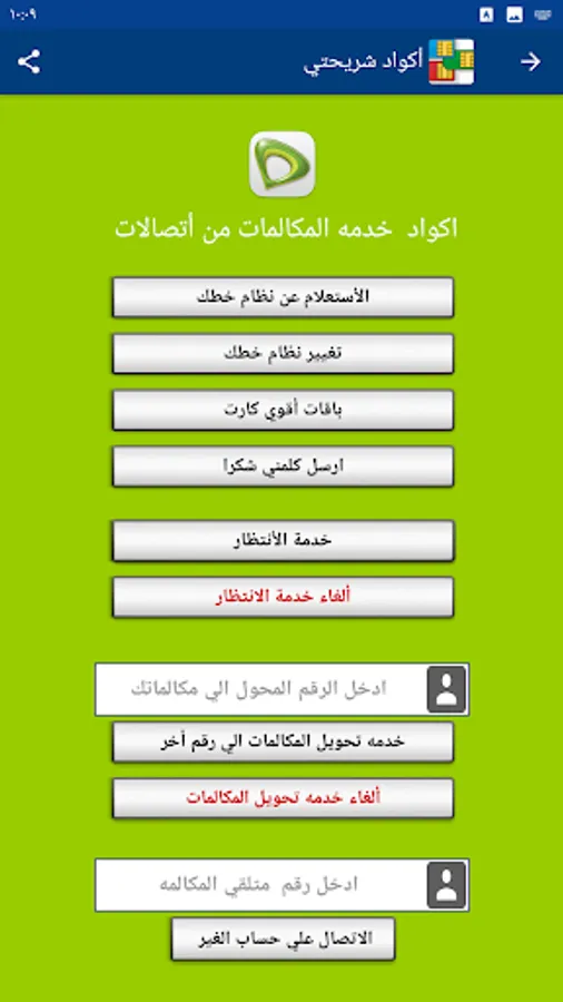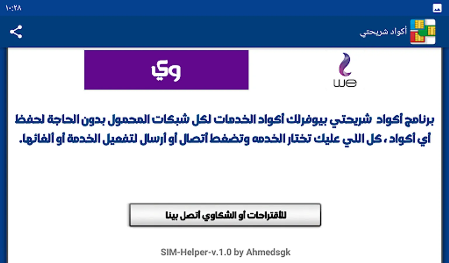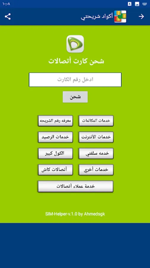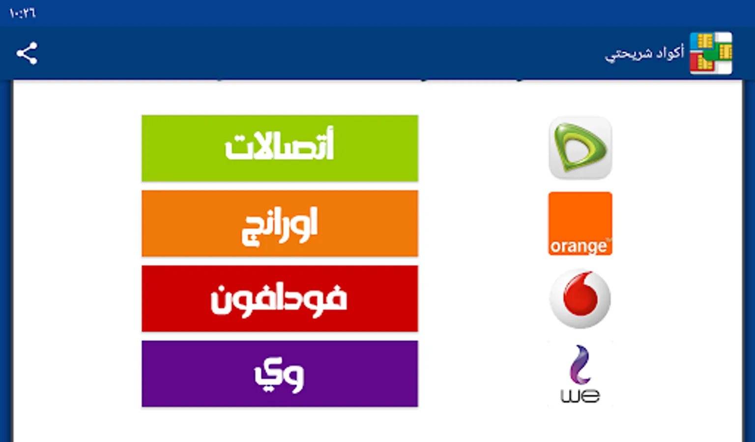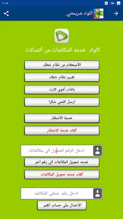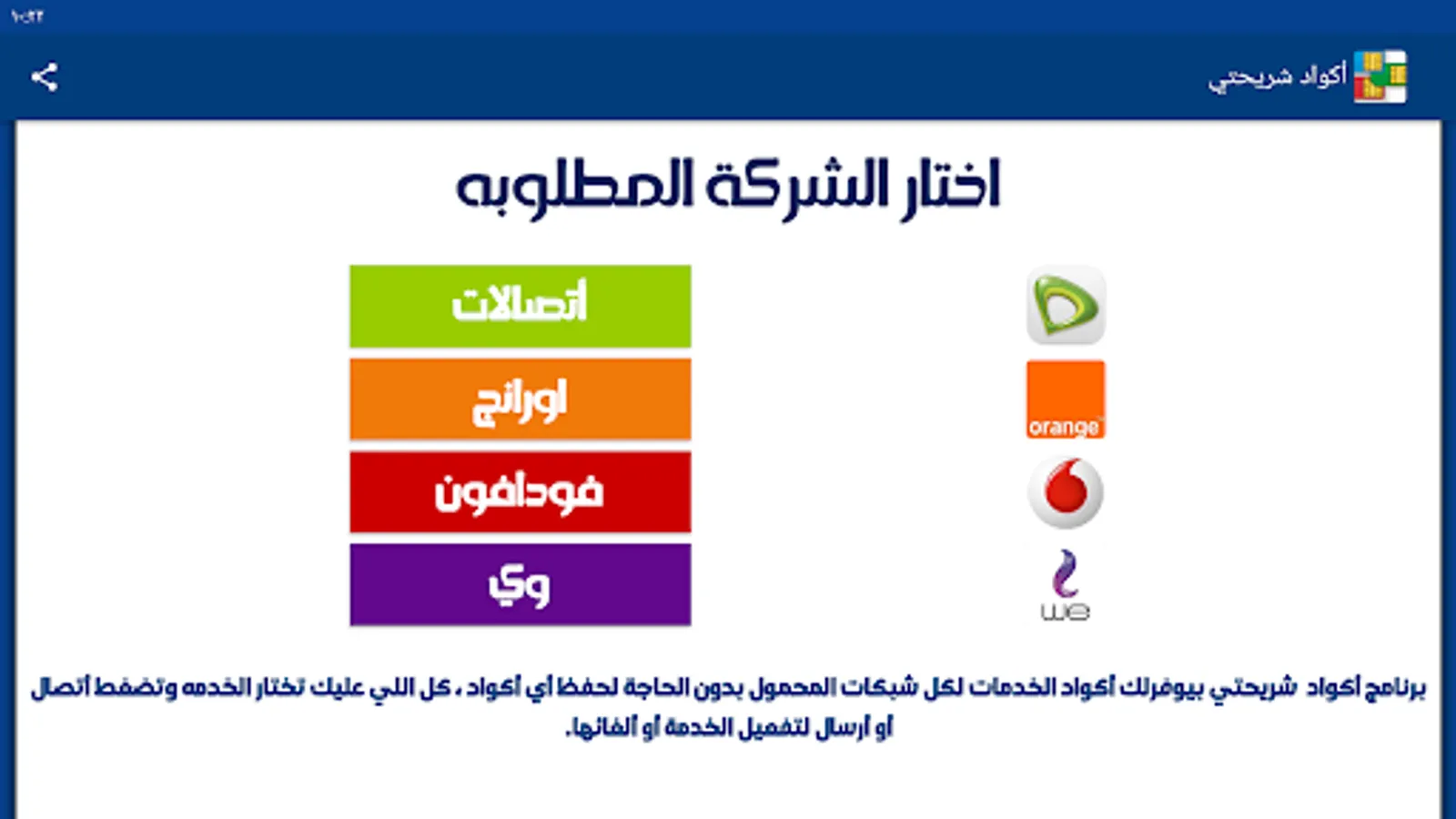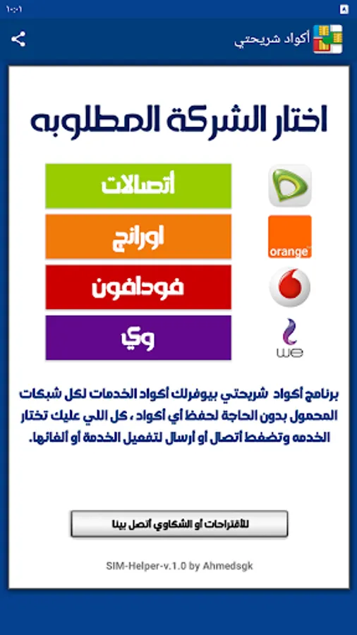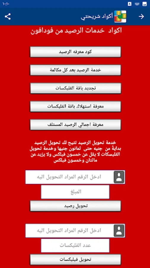 My SIM code program provides you with the codes for all services for all mobile networks (Vodafone - Wii - Orange - Etisalat) without the need to save any codes.