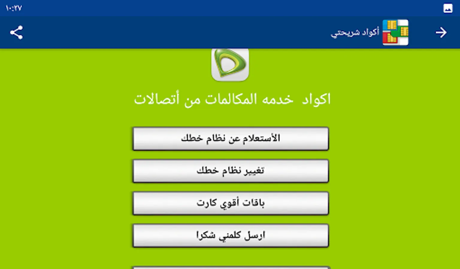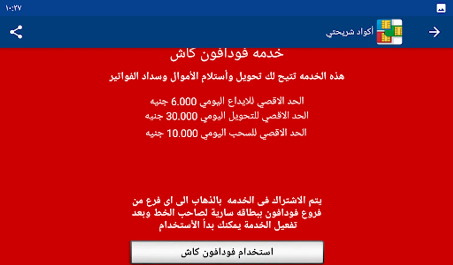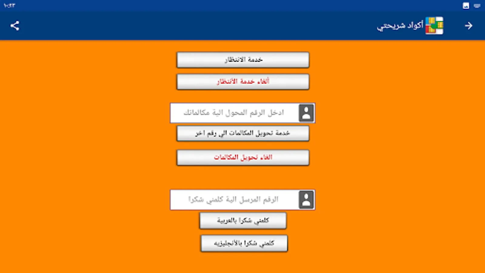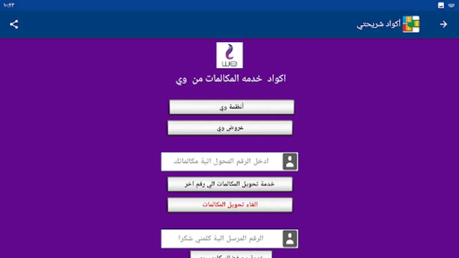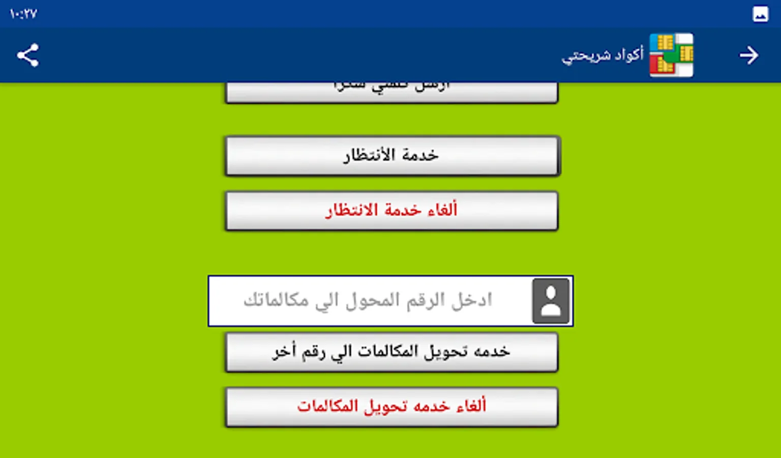 My SIM code program provides you with the codes for all services for all mobile networks (Vodafone - Wii - Orange - Etisalat) without the need to save any codes.