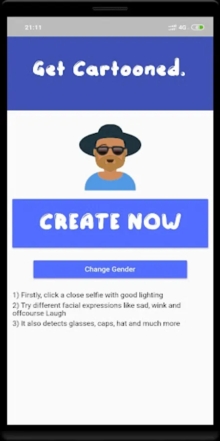 1. Click a Selfie with any expression like Happy, Sad, Wink and it detects and recognizes face using Machine Learning and create a cartoon image.