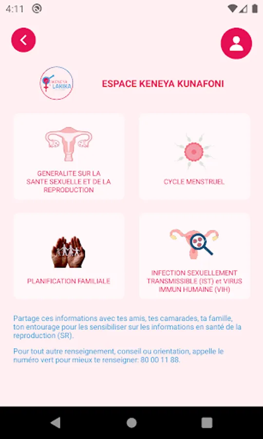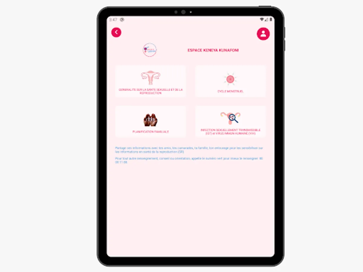 The project consists of developing a mobile application for informing and raising awareness among young people and adolescents on sexual and reproductive health with an educational game allowing them to learn self-training while having fun.