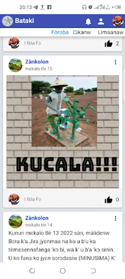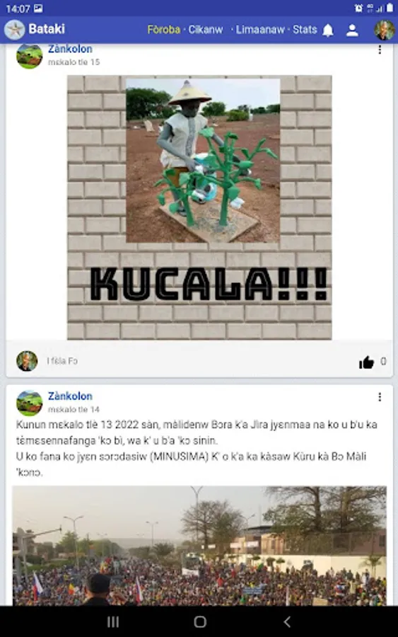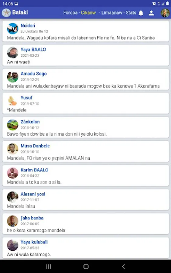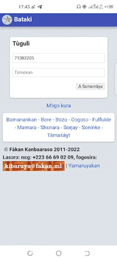 Bataki is a social network in the national languages of Mali. It is already interfaced in the following languages: Bambara, Boré, Dogon, Minianka, Peulh, Senufo, Soninké, Sonrhaï, Tamasheq. From now on, send and receive your messages and make publications in Malian languages. Facilitate discussions with your loved ones.
