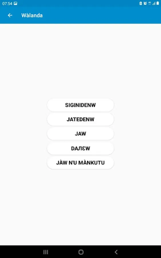 The Wàlanda application covers common concepts in Bamanankan (Bambara). Among these notions, there are notions of initiation to the transcription and reading of Bamanankan. The application is installed on Android terminals: telephone, tablet, iphone, Ipod.