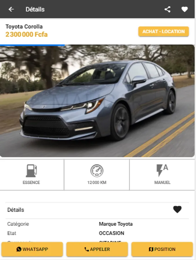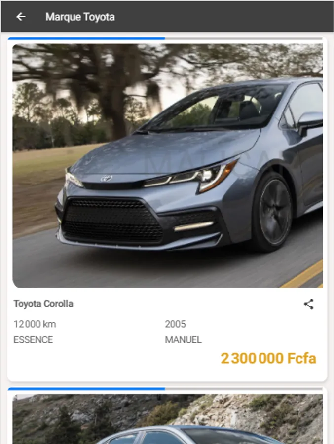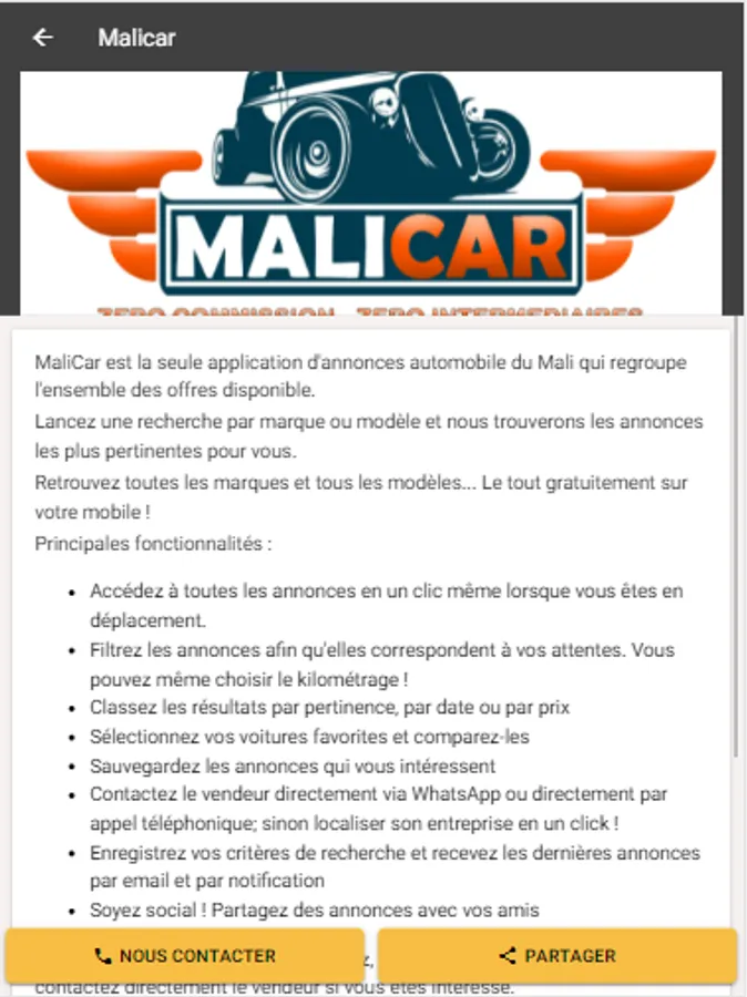 MaliCar is the only automotive ad application (Mali), which is available on all platforms (Android & IOS) and which includes all available offers.