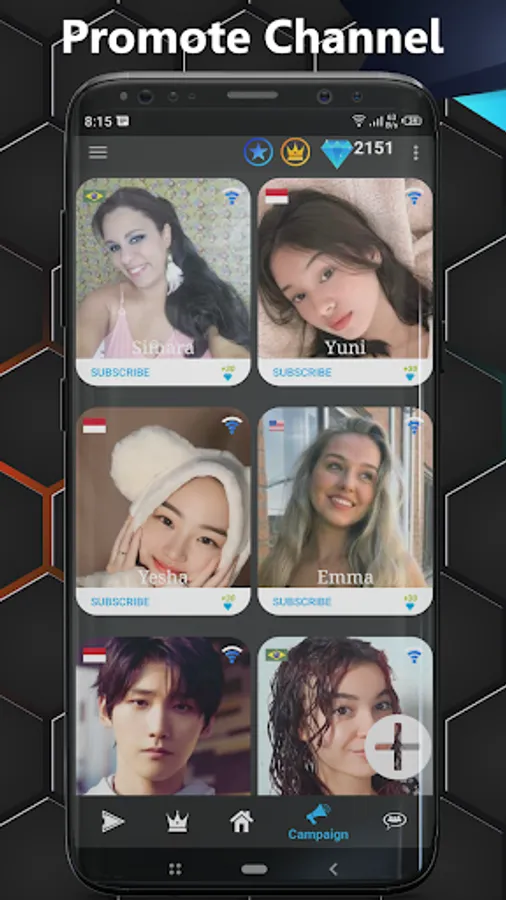 2. View other profiles to get entertained or diamonds which is required to add your profile Campaign. You are free to watch, like, and subscribe to any user if you like their channel content.