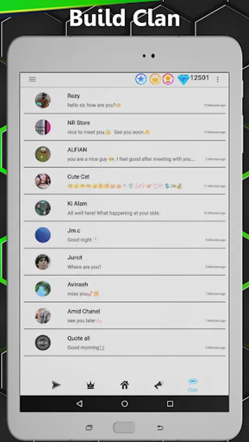 2. Able to expand your Clan to 10 members with their last message and its time.