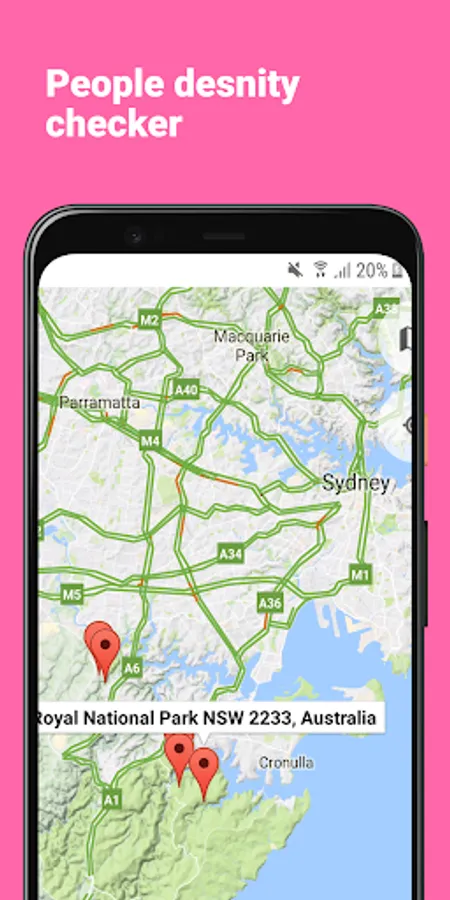 While using the app, the location of all the users' in the database is displayed on a Google map. This way each user can know how many people are in a selected place.