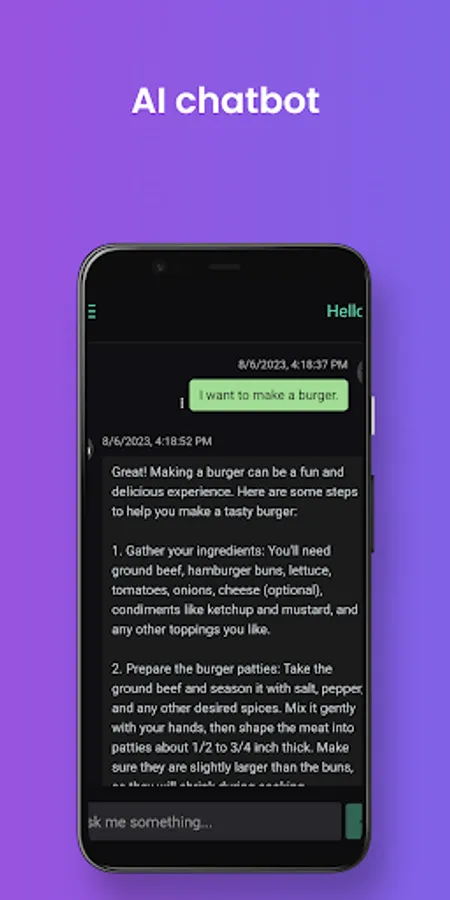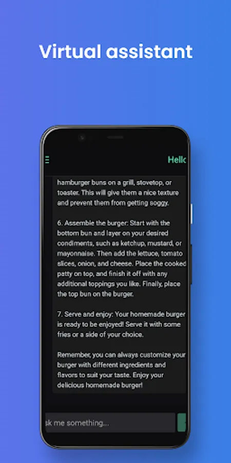 The app is an AI chatbot or virtual assistant, which requires no registration. It uses the latest GPT technology, optimised to mobile phones, to generate you the best results.
