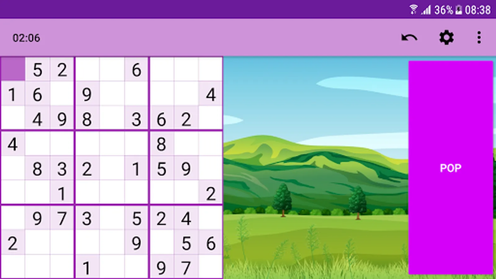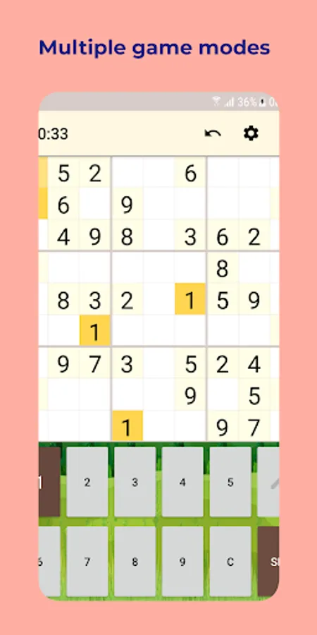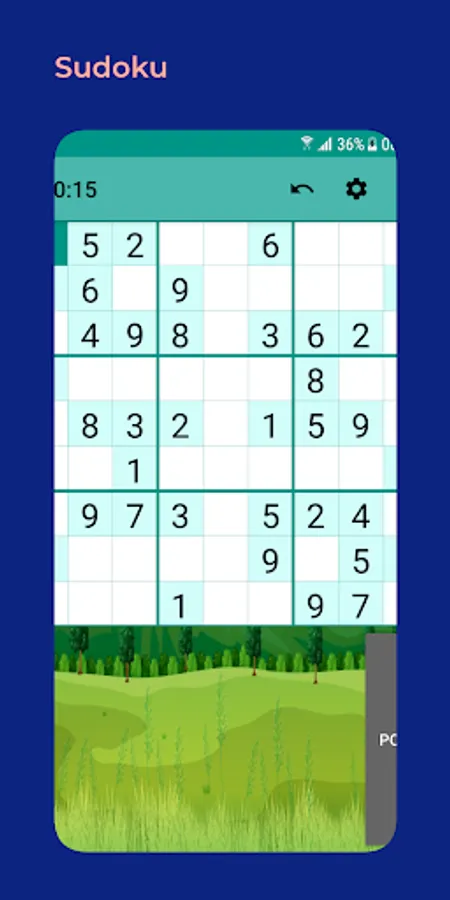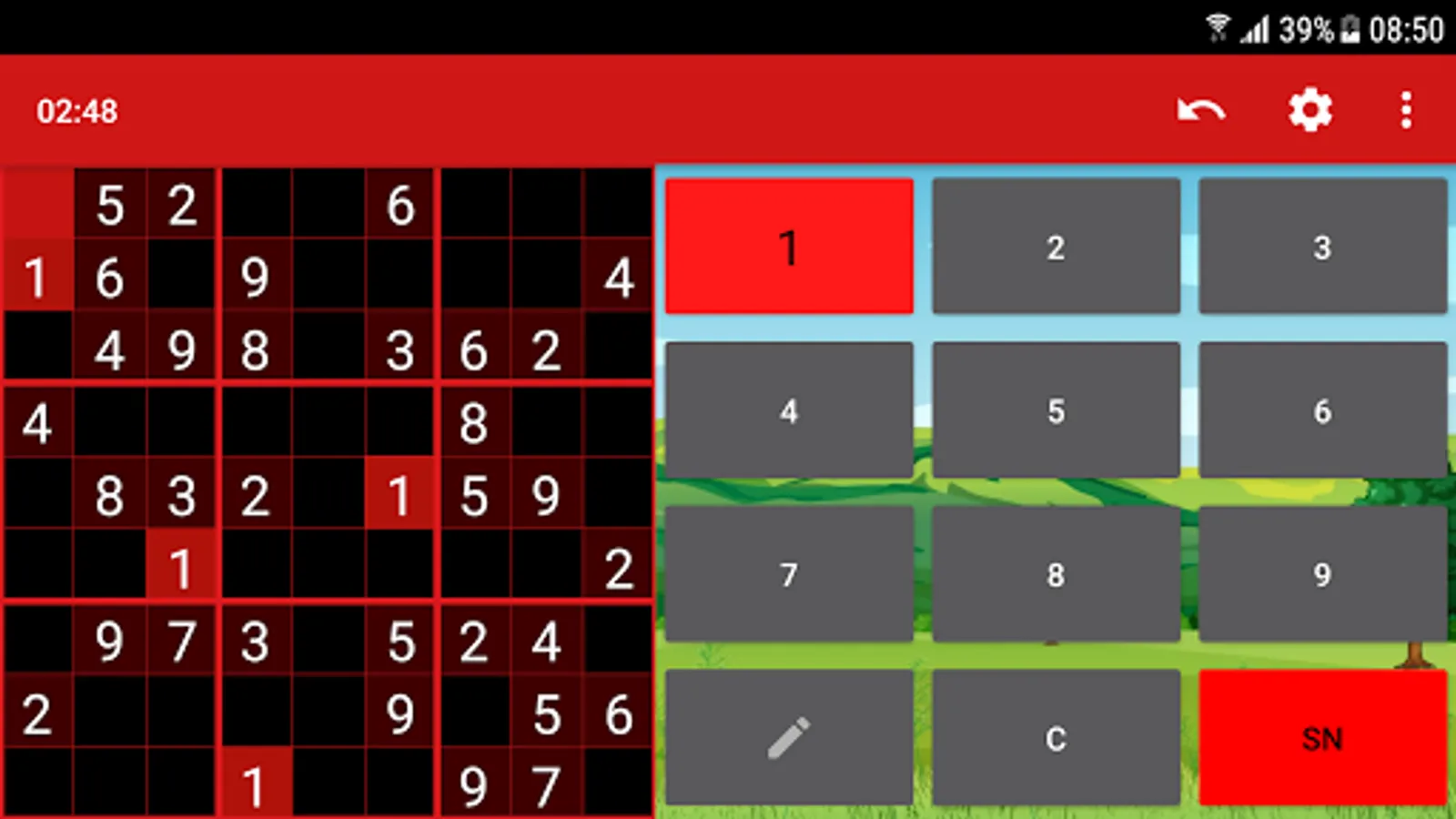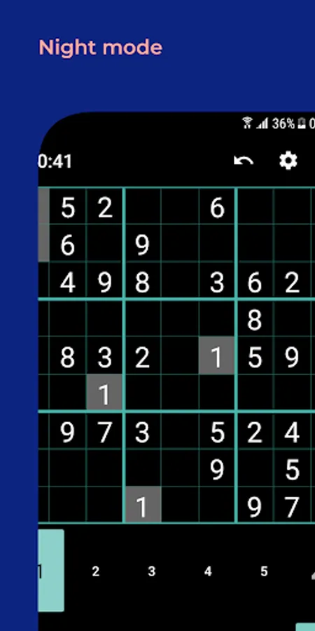 Game rules are that in each row, column and square needs to be filled out with the numbers from 1 to 9, without repeating any numbers within the row, column or square.