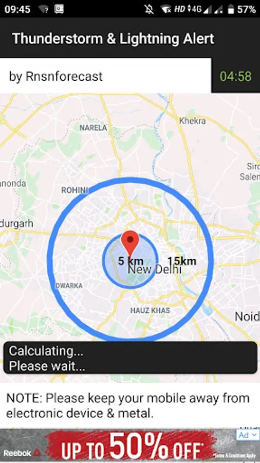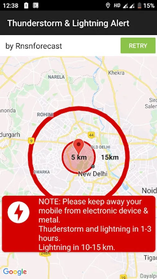 Thunderstorm&Lightning app is monitoring all lightning activity and alert you if lightning is happening near you by under 5km and 15km.