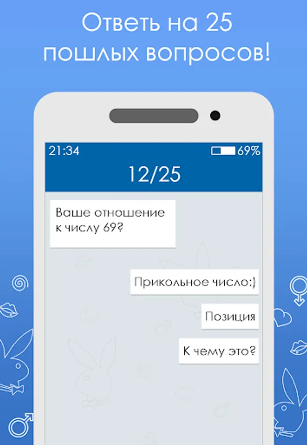 The application is made in the style of minimalism! You can answer the male and female questions, for this you need to choose your gender at the beginning of the test for vulgarity!