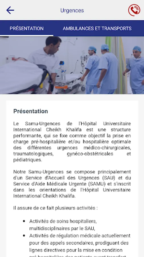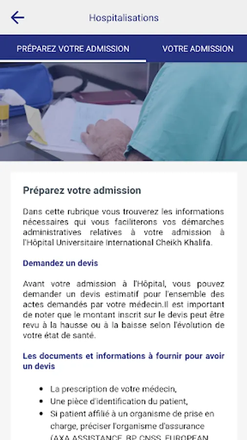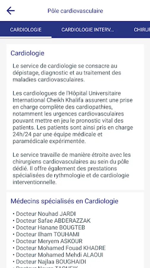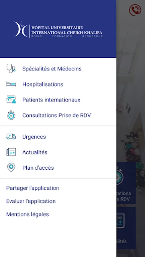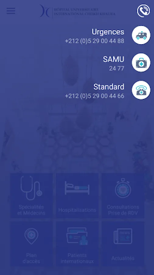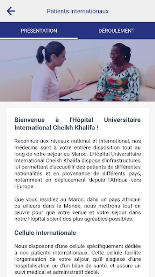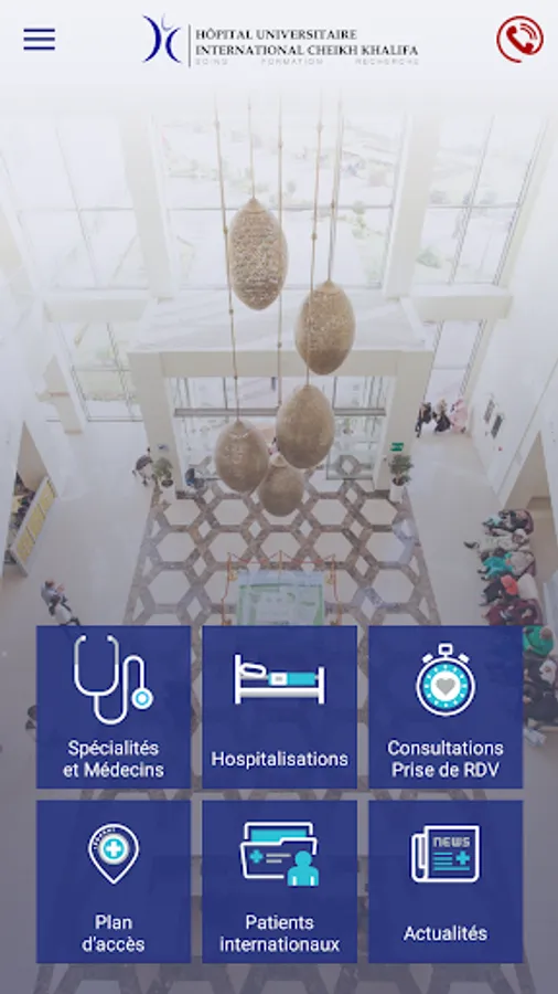 The application of the International University Cheikh Khalifa Hospital offers many services:
