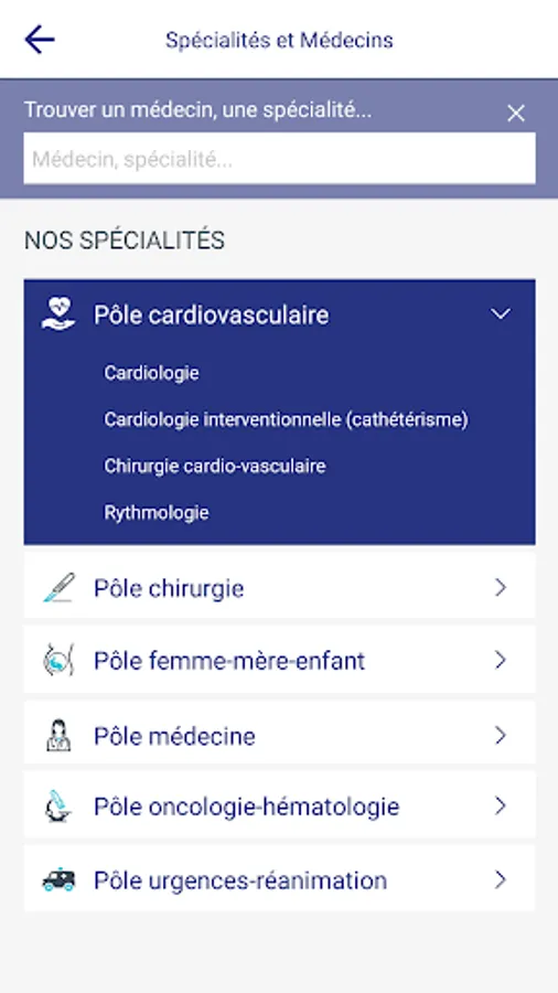 • Information on the different specialties and doctors,
