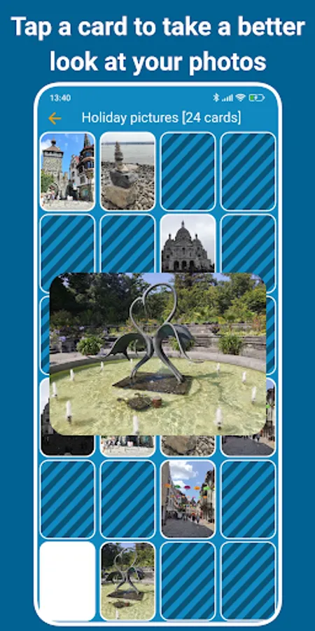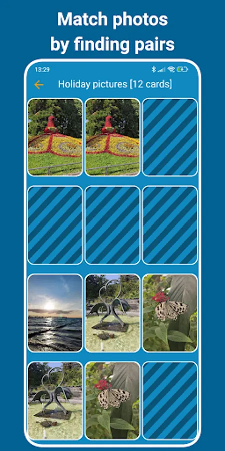 Welcome to Photo Match, the ultimate memory training game.This game brings your cherished memories to life! Immerse yourself in personalized games featuring your own photos. Whether it's your captivating vacations, precious family moments, or adorable pets, you can enjoy them all while playing this game.