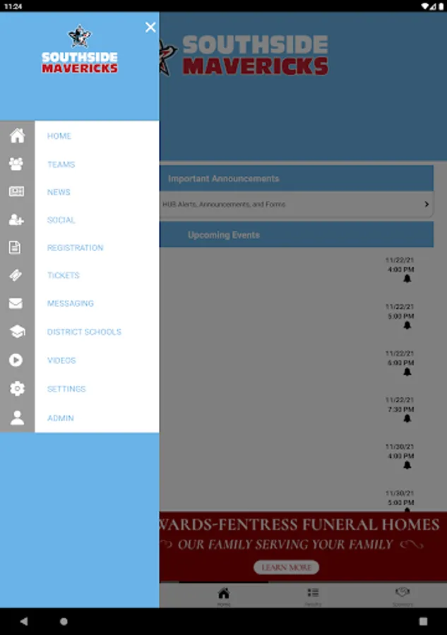 - Active Home Screen Dashboard: Upcoming Games and Recent News.