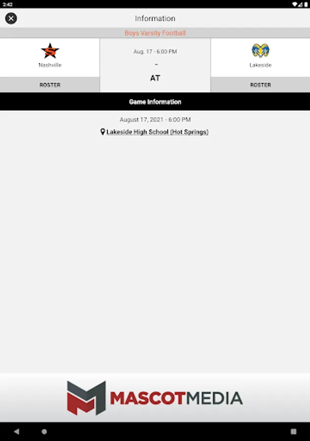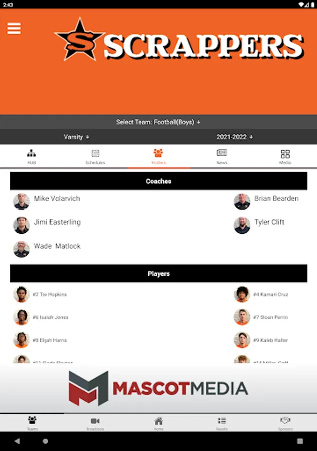 -Rosters: Current rosters by sport including jersey number, name, photo, position and grade.