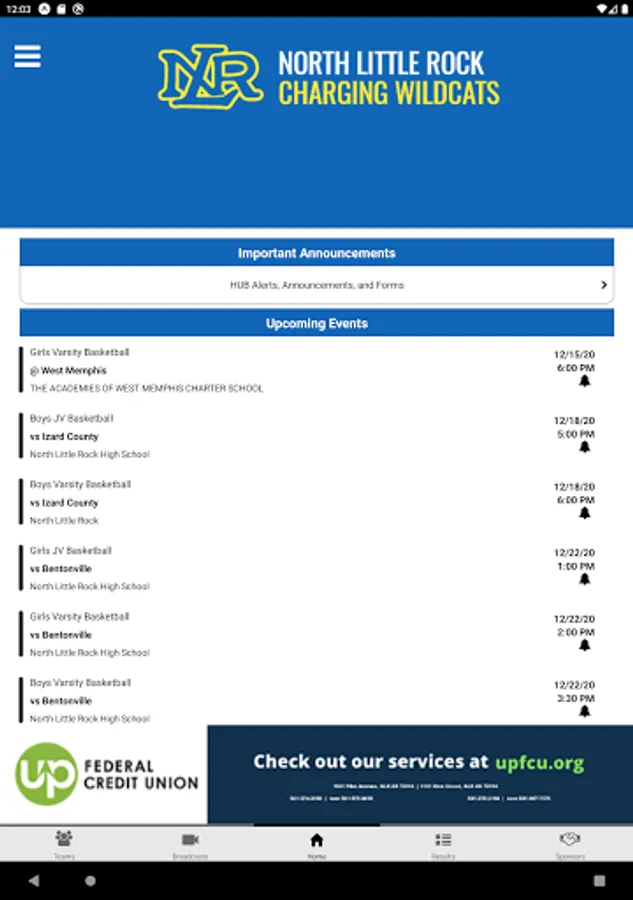 - Supporters: Special Thanks to local boosters and supporters of North Little Rock Charging Wildcat Athletics with a directory including website and in-app calling.