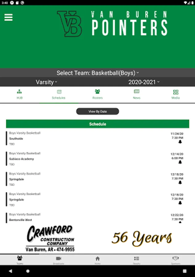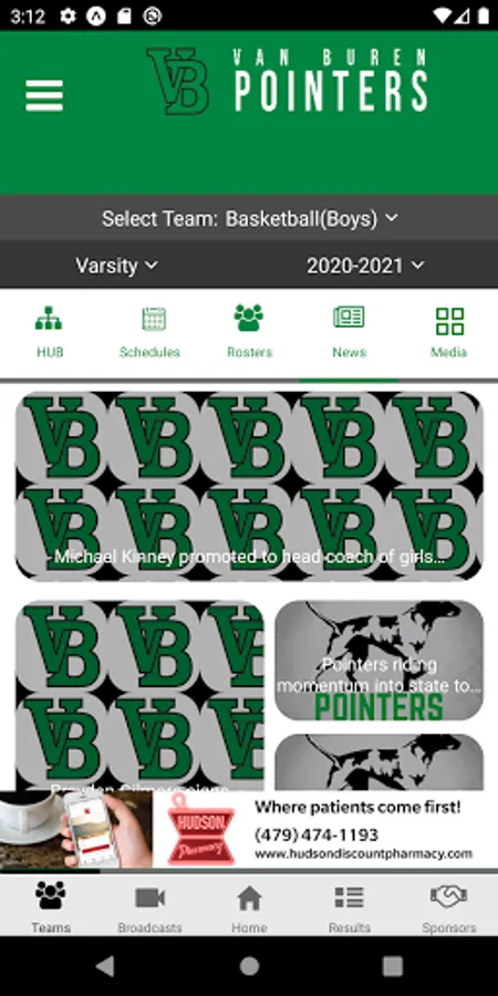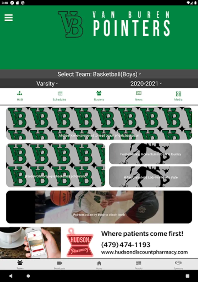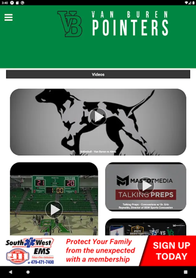 Content is managed by the Van Buren Pointers Athletics Department with help of high school students gaining valuable access to emerging and mobile technologies.